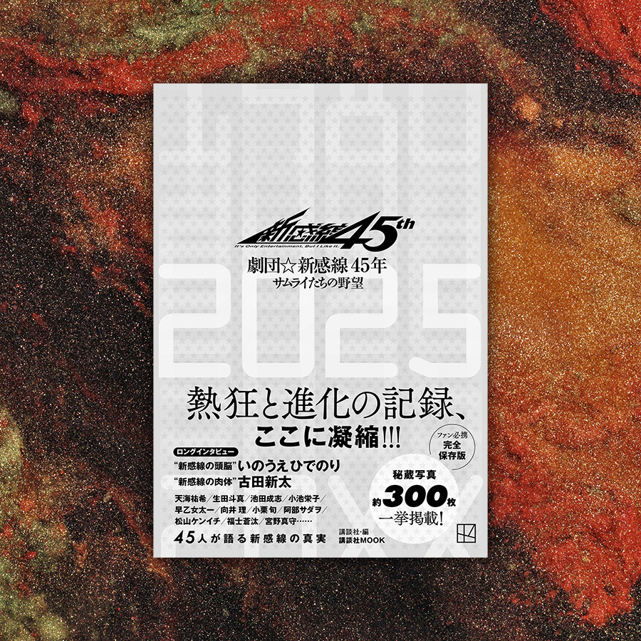 1980年の記念すべき第一回公演『熱海殺人事件』から最新作『爆烈忠臣蔵』までの45年間の全公演記録に加え、新感線の屋台骨である、いのうえひでのり、古田新太、中島かずきの3人のロングインタビュー、劇団をよく知る俳優、作家陣、スタッフのみなさまによる異なる視点からの新感線の魅力や舞台づくりの裏側も紹介。